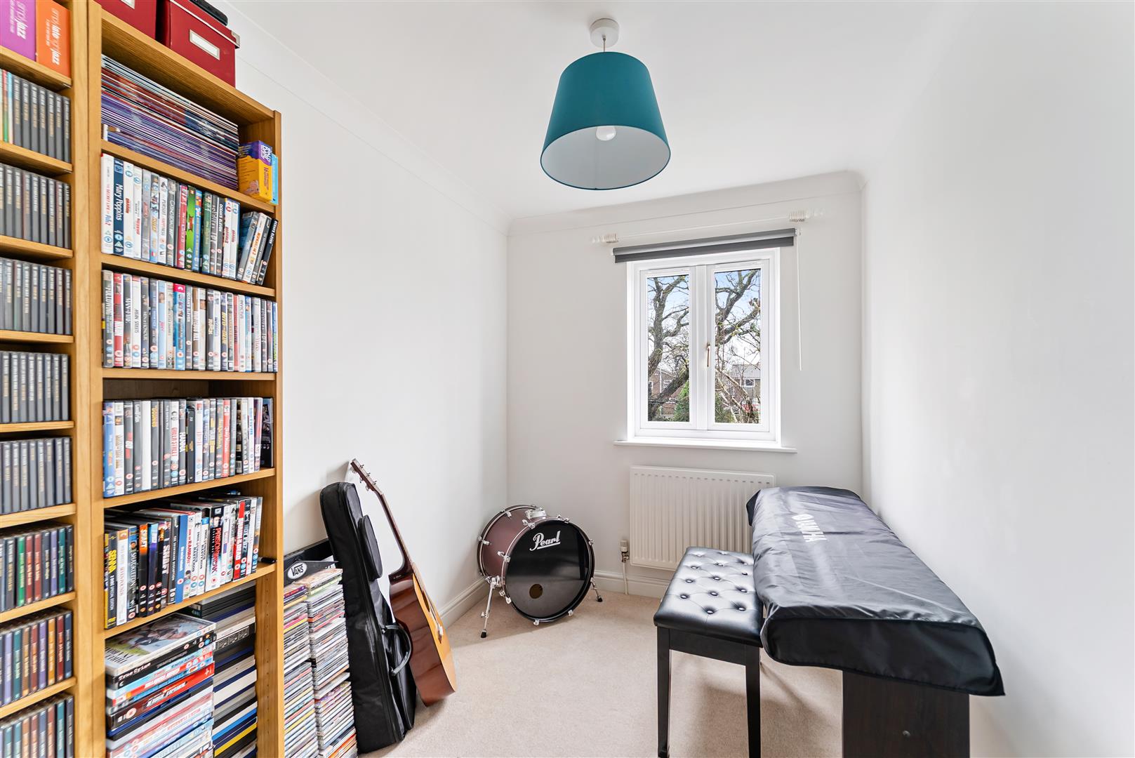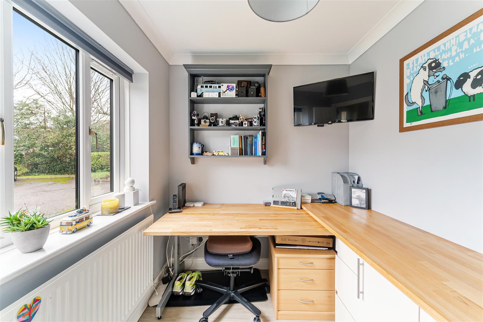 Study A versatile room which is currently being used as a Study area with fitted worktop and storage units below. Radiator, ceiling coving and UPVC double glazed window to the front.