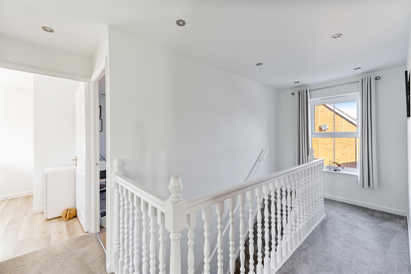 First Floor Landing Galleried landing with UPVC double glazed window to front. Airing cupboard housing pressurises flow water tank . Loft access with ladders. Doors to all Bedrooms and Bathroom.