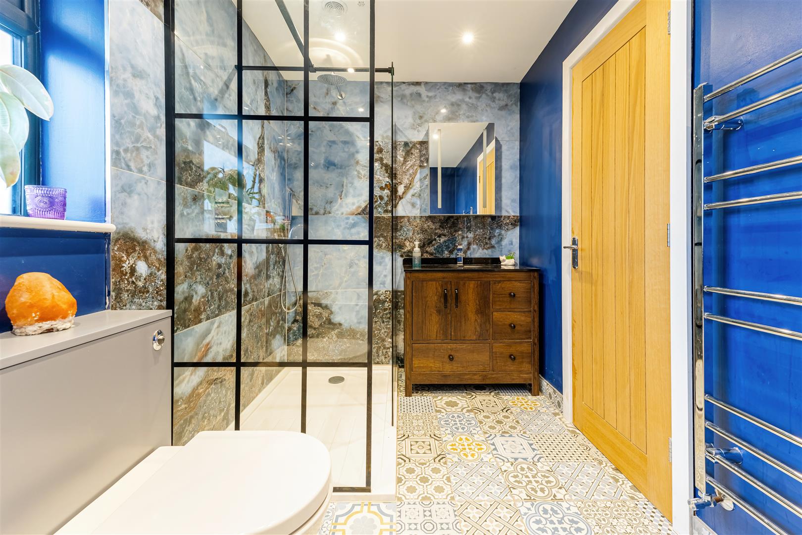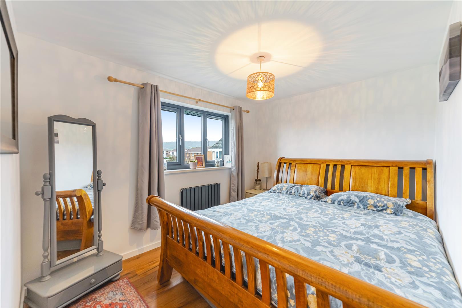 En Suite Shower Room Fully tiled and fitted with a white suite comprising: Shower enclosure with shower above. Vanity unit with inset wash hand basin with storage below. Radiator. UPVC double glazed window to the rear.