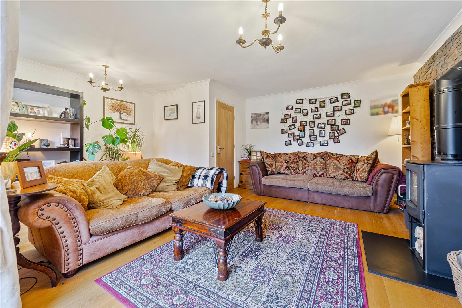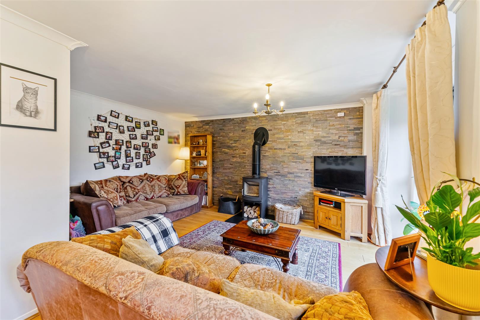 Sitting Room A light and bright room with the key feature being the log burning stove set on a marble hearth with feature slate wall. Wood flooring, radiator, TV point, ceiling coving and sliding doors to the Conservatory.